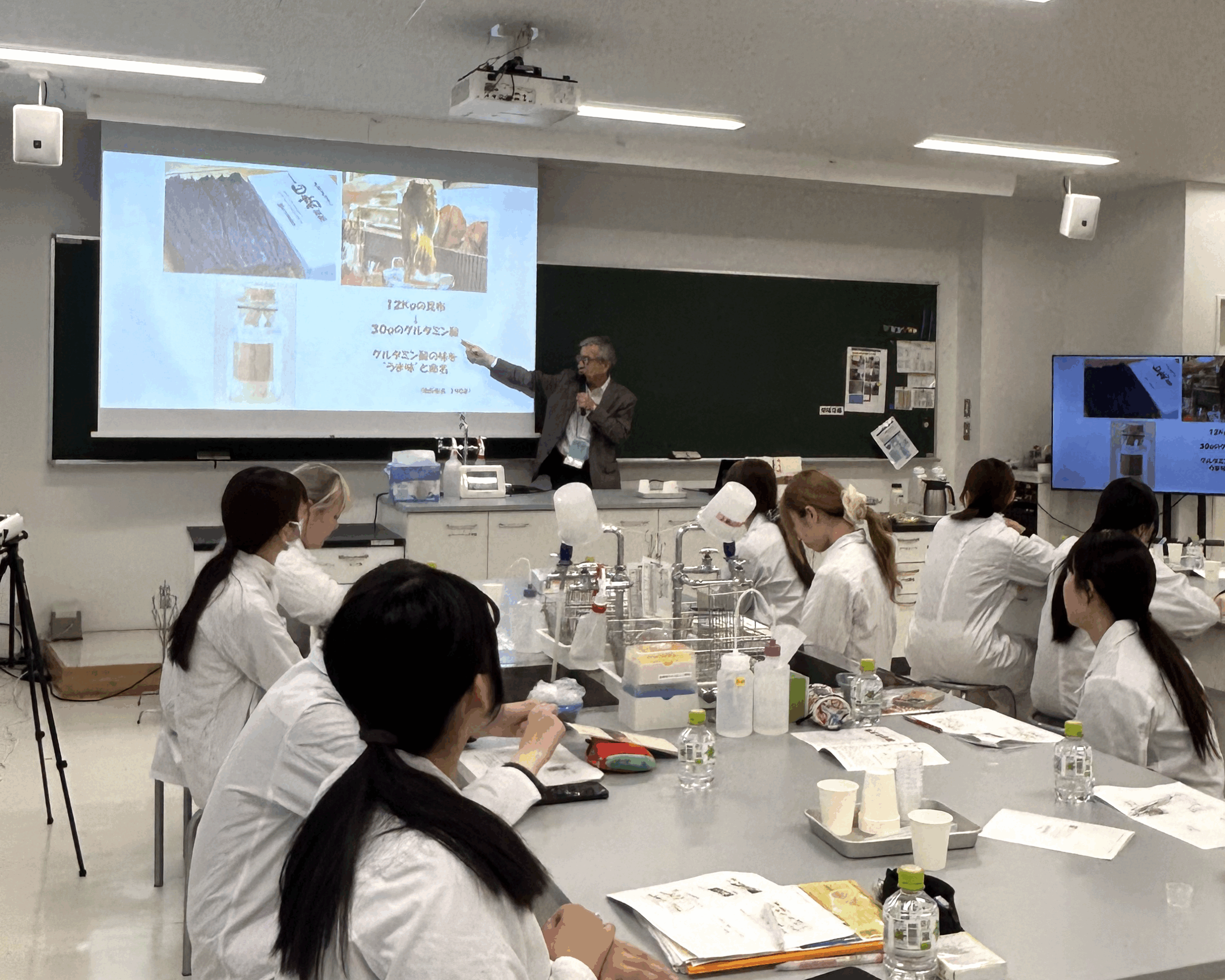 うま味に関する情報を国内外に発信する「特定非営利活動法人うま味インフォメーションセンター」から、冊子「うま味」を提供していただき、山本先生による授業は進みました。