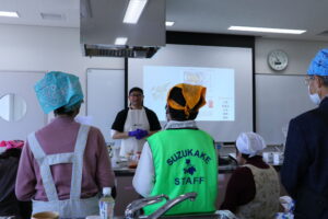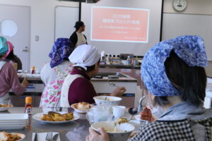 「フリーズドライ商品を使用した料理教室」に参加された方達は、学生が考案した健康的で本格的なメニューを試食して「簡単なのにおいしい」と好評だったそうです。