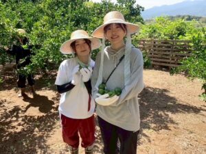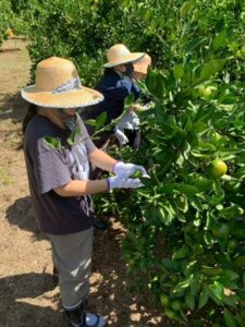 これから学寮に来る人が、甘くておいしいミカンを収穫できるよう、青みかんの間引きをしました。