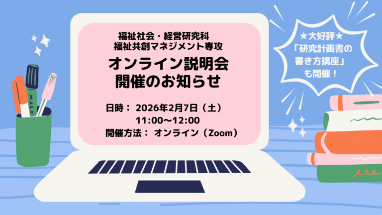 【重要】2月期入試をご検討中の方へ まだ事前個別相談を受けていない方はお急ぎください! 昭和女子大学 専門職大学院 福祉共創マネジメント専攻では、受験にあたって「事前個別相談」への参加が必須となっております。 2月期入試(2026年2月実施)をご検討 […]