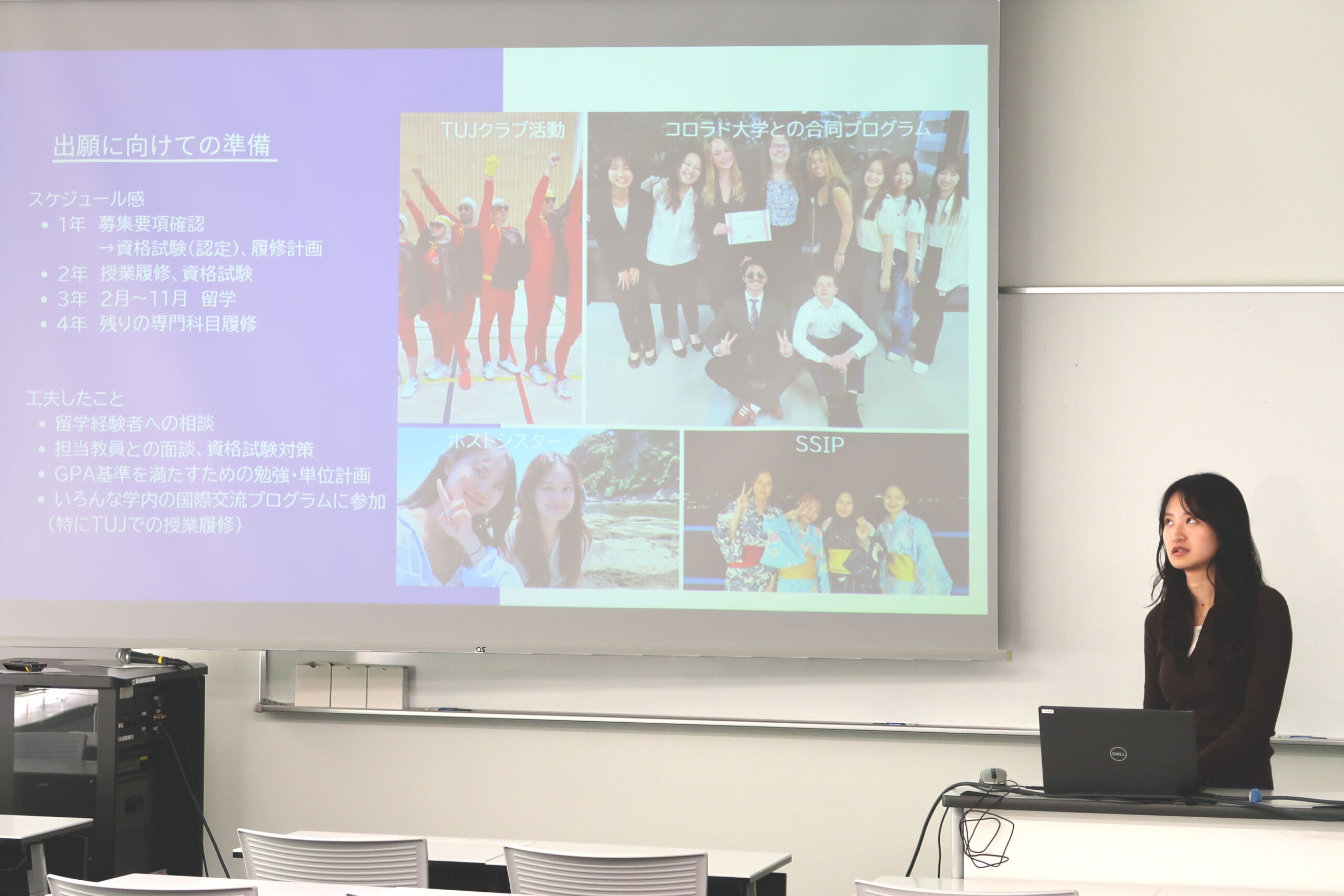 交流会ではヴェネツィア大学(イタリア)とクイーンズランド大学(オーストラリア)にDirect Trackで留学した先輩から話を聞きました。参加した学生たちは留学生活のイメージをふくらませながら、自分が進みたい留学先を検討する良い機会となりました。リアルな声に触れ、留学への期待もさらに高まった様子でした。