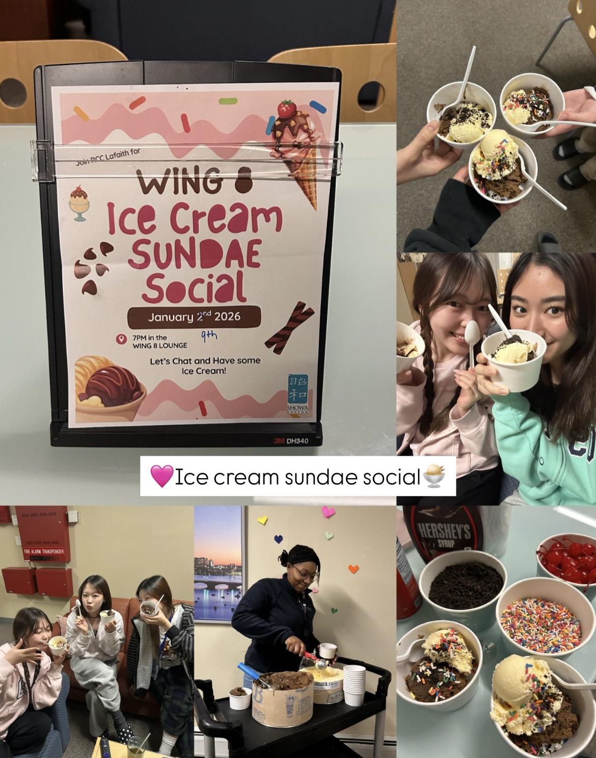 ボストンの冬はとっても寒いですが❄️、このイベントではみんなで夕食後にアイスを食べました。チョコ味とバニラ味が用意されていて、私は両方選んでオレオをトッピングしました✨️みんなで色んな話をしながらアイスを食べれて1週間の終わりに楽しい時間を過ごすことができました❤️