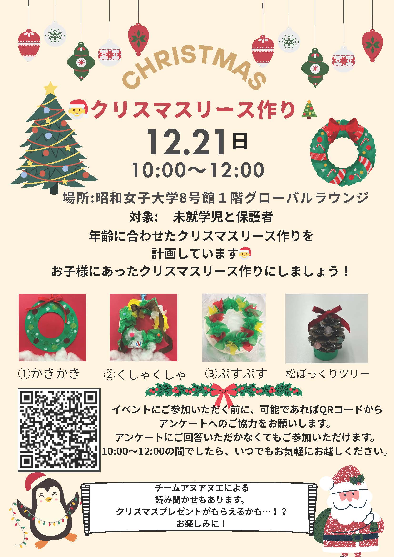 内容:クリスマスイベント 一緒に作ろう!遊ぼう!学ぼう!