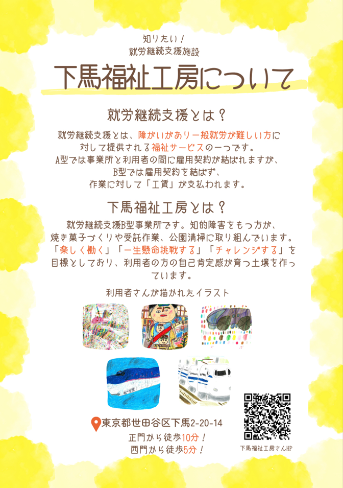 私たちは障害者の方との地域での交流や学びを目的に、昭和女子大学の授業の一環として「下馬福祉工房」にてボランティア活動を行いました。