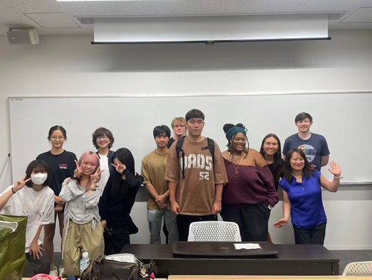 「エモい」「ガチ勢」「チルい」などの⽇本語のスラングを紹介すると、テンプル⼤学の学⽣たちは驚きと笑いの連続!逆に、彼らの国の流⾏語を教えてもらい、⾔葉の⾯⽩さや⽂化の違いを実感しました!