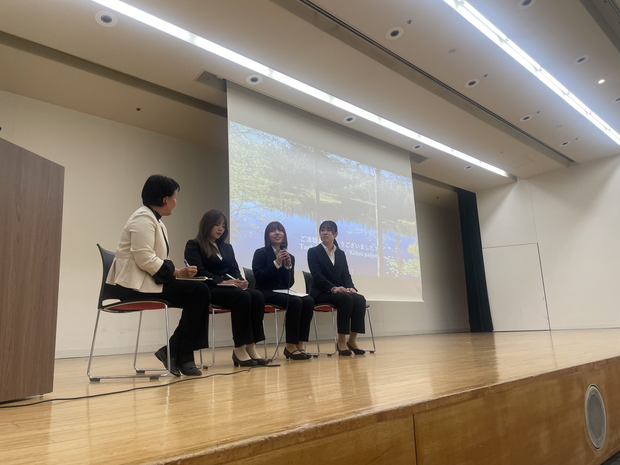 また、現役学生たちによる視察報告では、実際に現地で見て、触れて、感じた最新の北欧福祉の姿や、北欧福祉研修に参加したことにより興味をもったボランティア活動を通して学んだことが生き生きと語られ、会場の参加者も熱心に耳を傾けていました 。