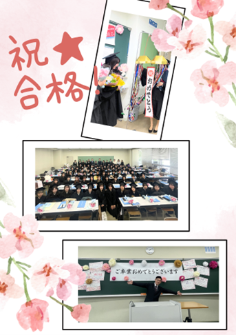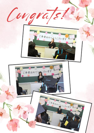 教室前の黒板には、福祉社会学科の教職員からのお祝いの言葉が寄せられ、在校生が卒業生のために装飾をしてくれました!