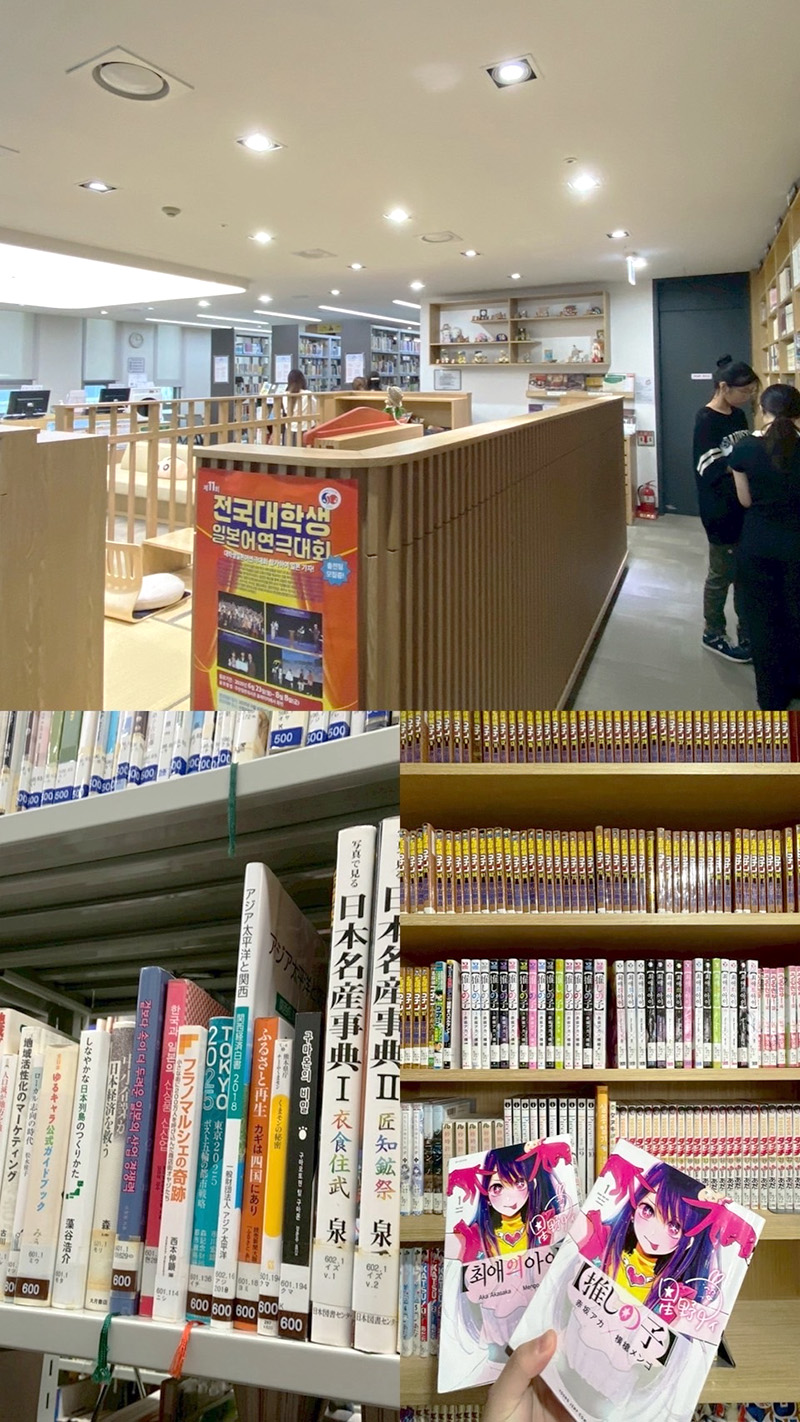 国際交流基金のすぐ隣には、文化情報室と呼ばれる図書室があります。日本語で書かれた多様なジャンルの書籍や新聞が所蔵され、漫画コーナーには韓国語の翻訳版も置いてありました。日本に関心のある韓国人や、韓国に住む日本人の方々が主に利用しているそうです。