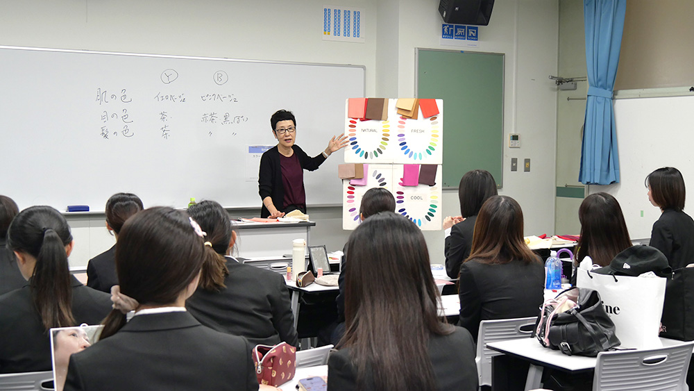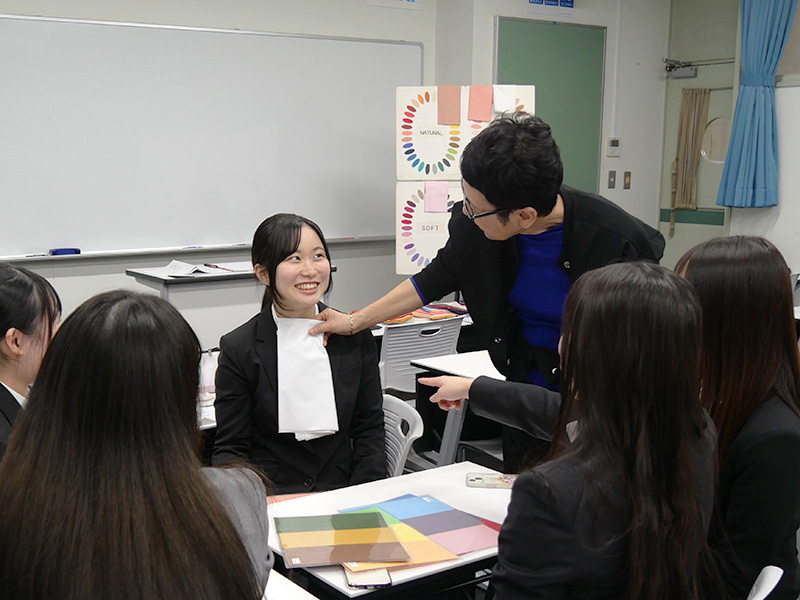 現代教養学科では、毎年3年生を対象に「リクルートカラーコーディネート講座」という学科独自のキャリア支援講座を実施しています。