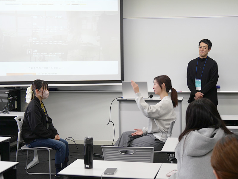11月6日(木)の「ワークショップ技法(担当:見山謙一郎教授)」で、東京大学大学院教育学研究科附属海洋教育センター特任講師の田口康大さんと、映像作家・映画監督の福原悠介さんにお越しいただき、「対話インタビューワークショップ」を体験しました。
