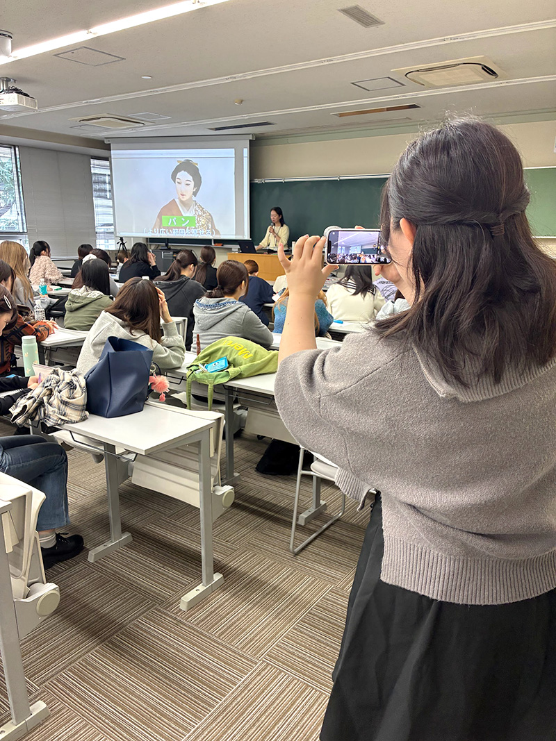10月21日に行われた第3回の授業では、学生自身がカメラを持ち、写真や動画の撮影を行いました。自由に教室内を歩き回り、「どうすれば伝えたいことが伝わるのか」を考え、実際に撮影をすることで、マスメディアを創ることの大変さを学びました。