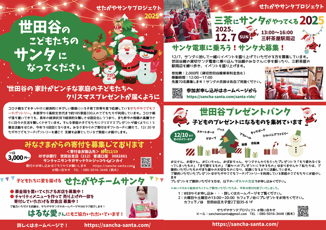 「せたがやサンタプロジェクト」公式サイトはこちら⇒https://sancha-santa.com/