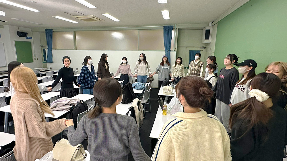 講義が始まった瞬間、「Stand up!」「みんな輪になって!」という幾田さんの声に、「これからどんなワークショップが始まるんだろう…」とソワソワしながらスタートした今回のワークショップ。しかし、はじめの1分で全員が完全に“幾田ワールド”に引き込まれていきました。