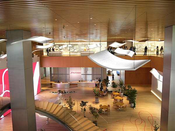 1日目の最初のプログラムは、学科の学びである3本柱の「社会構想」をテーマに横浜のみなとみらいにある資生堂さんの「Shiseido Beauty Park」を見学させていただきました。