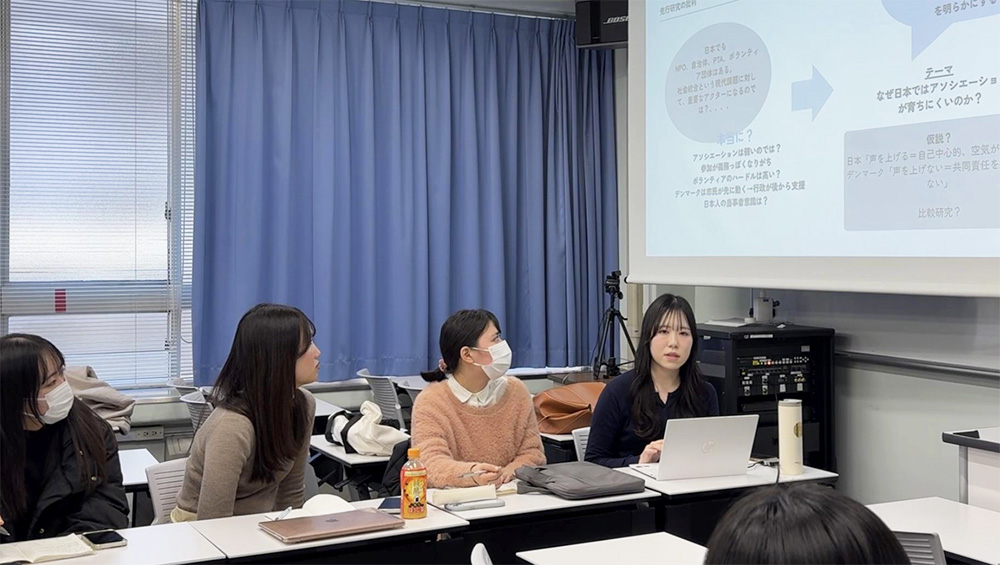 特に勉強になったのは、発表後の質疑応答の時間です。私自身、ゼミのメンバーから「なぜ?」「どういう意味?」といった率直な疑問や、実体験に基づく意見を聞くことで、自分でも気づいていなかった不明瞭な点や思い込みに気づくことができました。また、他の学生の発表を聞いて積極的に意見を出すことで、議論の場に慣れる練習にもなりました。この経験自体が、ゼミでの大きな収穫だと感じています。