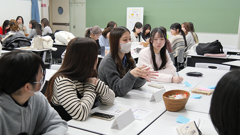 ・これまで4年生と関わる機会がなかったので、学科の先輩から実際の就活事情を聞けてとてもためになりました。ローテーションで先輩方が回ってお話ししてくれたので、いろんな業界に就職する先輩のお話を聞けてよかったです。自分の気になっていることも色々聞くことができて、就活に対して不安に思っていた気持ちが少し軽くなりました。2年生の春休みや3年生の前期から就活を始めた先輩もいらっしゃったので、見習って少しずつ就活を進めていきたいと思います。(2年生)
