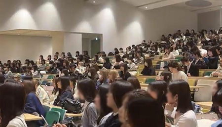 会場となったホールには現代教養学科の1年生から4年生が集まり、温かい拍手の中でスタートしました。