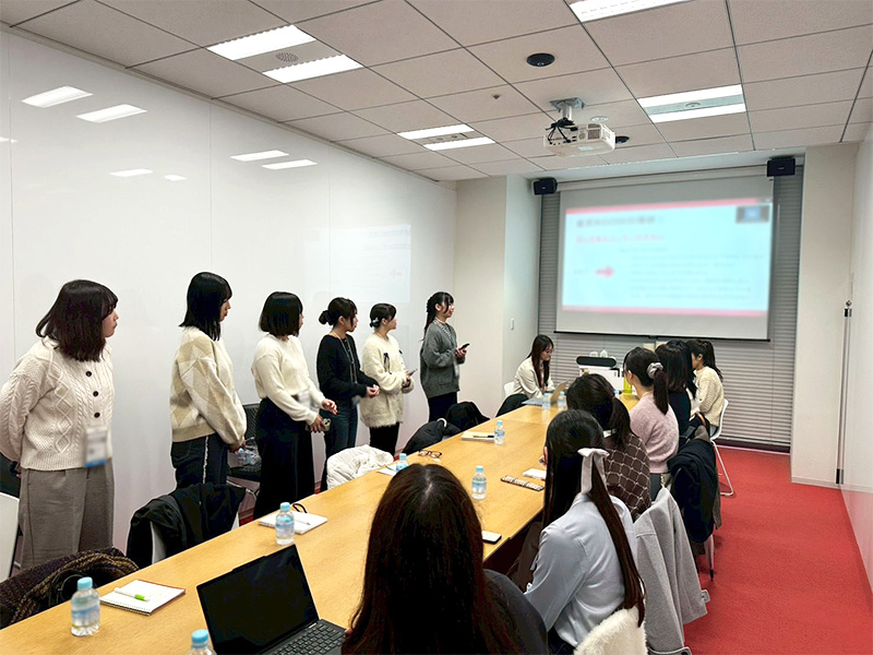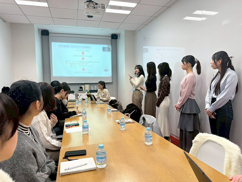 1年間を通して、前期に研究した「Z世代の購買行動プロセスや判断基準」に関する内容を、後期の発表へとつなげることができたと感じています。後期の活動では、これまでの研究を踏まえ、Z世代の新規獲得につながるSNS発信やサービスのあり方について、ゼミ全体で何度も議論を重ねながら、具体的な提案として形にすることができました。特に今回は、実際に企業の方々に向けて発表を行い、フィードバックをいただくという貴重な機会を通して、私たち学生の視点と企業の視点の違いや、それぞれを掛け合わせることの重要性を実感しました。楽天の方が提案に対してたくさんお褒めの言葉をいただき、実現できるかを考えながら聞いてくださったことが嬉しかったです。一方で、提案を実現するために必要な視点や課題にも気づくことができ、研究をさらに深めていく上で大きな学びとなりました。今回の経験を通して得た気づきや課題を、今後のゼミ活動や卒業研究へとつなげていきたいです。(富所遥香)