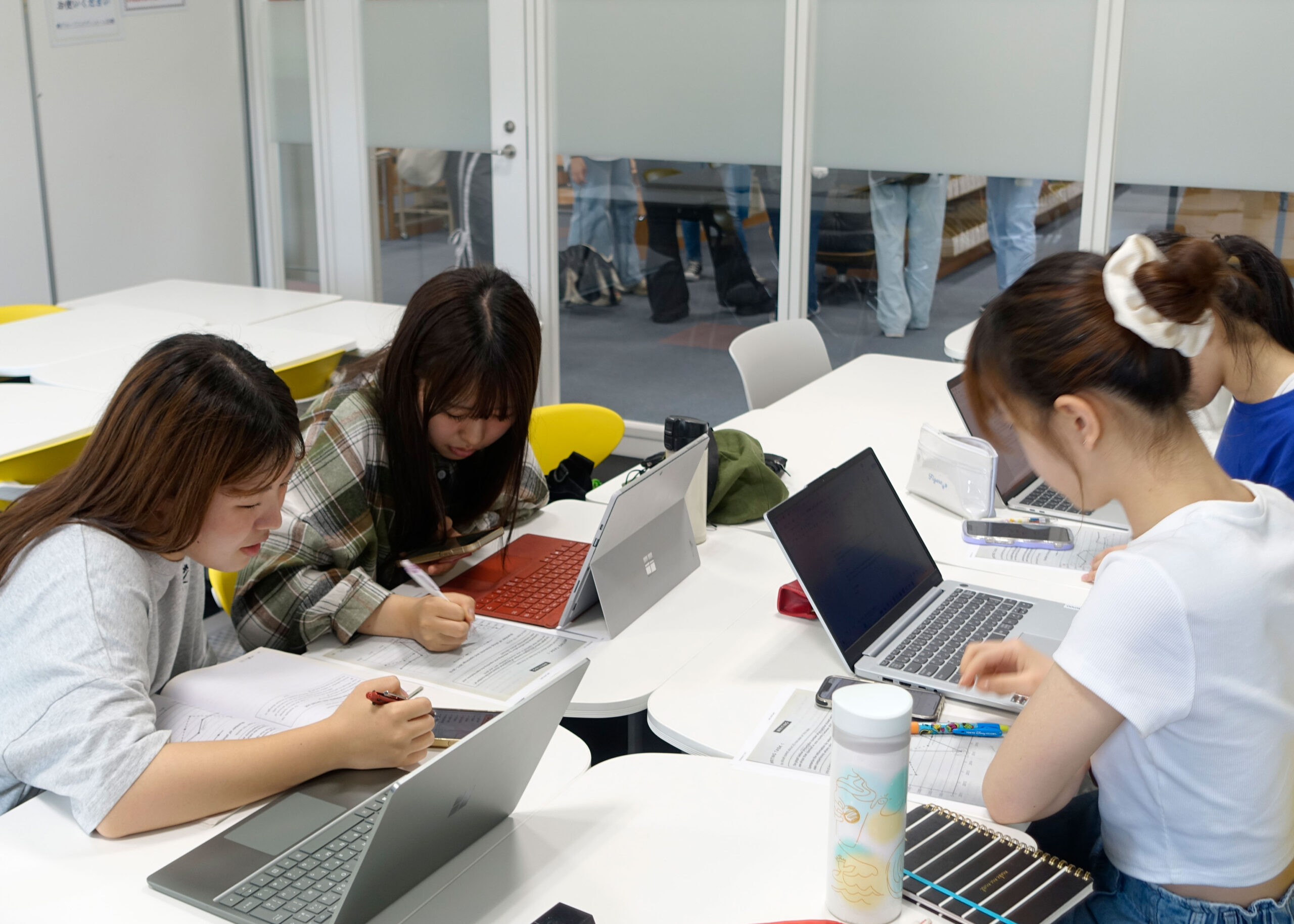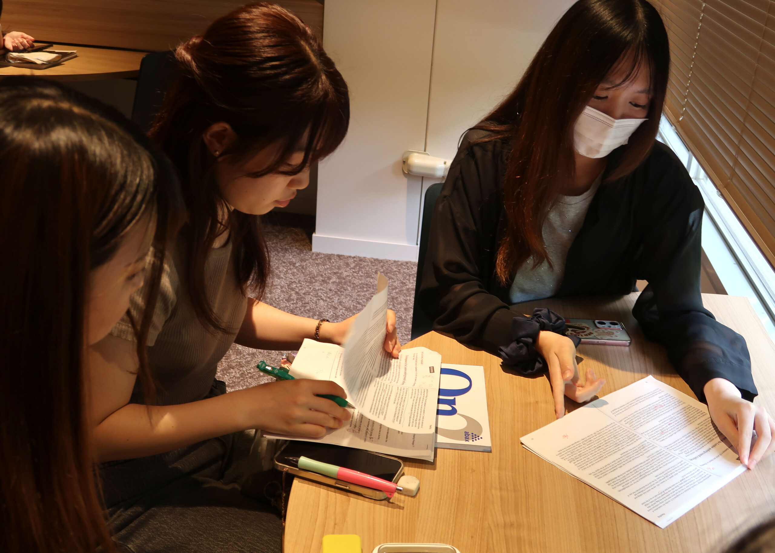 国際教養学科・国際日本学科では、今年から、DDP(ダブル・ディグリー・プログラム)や認定留学、ディズニー・インターンシップを目指している国際教養学科・国際日本学科の1年生に向けて、TOEIC・IELTSの強化プログラムを始めました。すでにTOEIC 800点以上またはIELTS 5.5以上を取得している上級生に、サポーターとして、1年生の学習をサポートしてもらうという初の試みです。