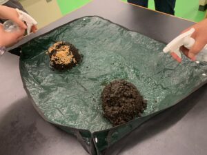 内 容:地表や植物からの水の蒸発、雲のでき方、山における木々の役割、土砂崩れのモデル実験を、みんなで試しました。その際、実験材料を参加者の自宅に郵送し、オンラインで実験教室を実施することを想定し、遠隔実施における指導方法や参加者の理解度、運営上の課題の乗り越え方を検証しました。水分量の調節、用いる材料の意味を丁寧に説明することが大切だということがわかりました。