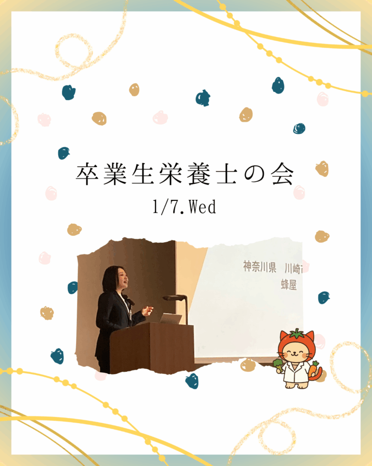 1月7日、例年恒例となっている「卒業生栄養士の会 ~企業・公務員・病院などで活躍する先輩栄養士に学ぶ~」を開催しました。 本企画は、卒業後数年の若手卒業生を大学にお迎えし、在学生に向けて現在の仕事内容ややりがい、学生時代に身につけておくとよいことなど […]