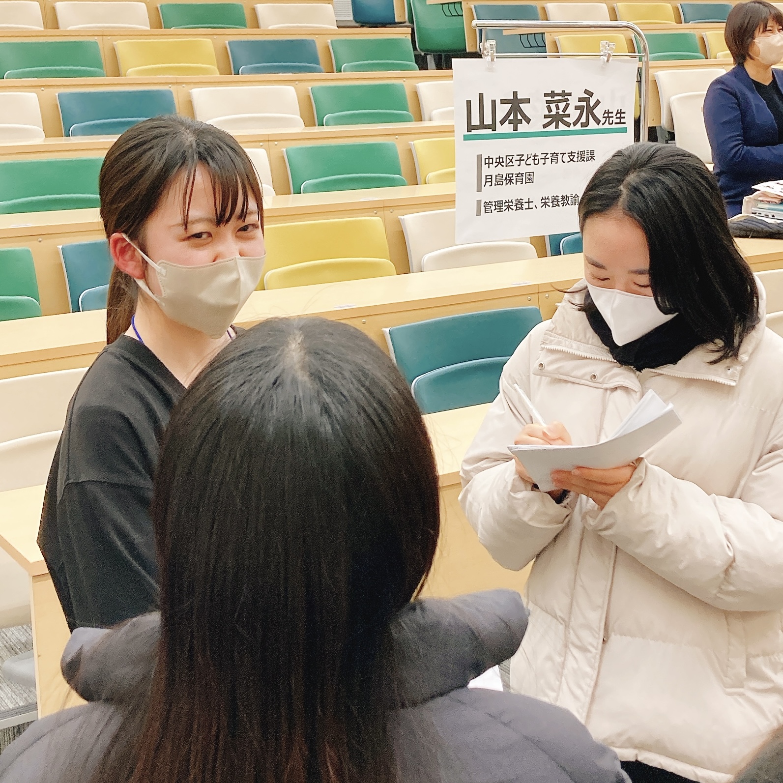 学生たちは各講師の周りを囲み、仕事内容や就職活動、実習への不安などについて、積極的に質問していました。