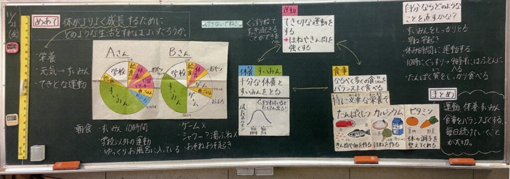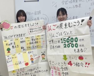 教育実習では、給食経営見学や講話、授業見学など現場でしか学ぶことのできないことに触れることができました。栄養教育実習は6日間と短かったため、事前に教材研究や授業媒体の作成などの準備をしていきました。実習を通して感じたことは、子ども、各家庭の考えはかなり多様化しており、さまざまな方向への健康情報等にアンテナをはる必要があるということです。特に個別的な相談指導の重要性や難しさを感じました。