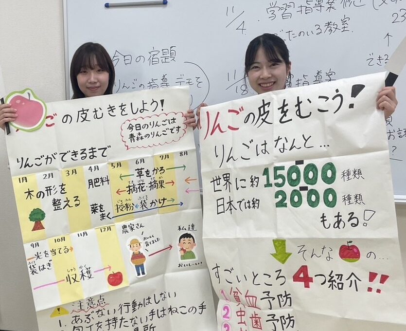 管理栄養士の授業に加え、教職課程を履修することは決して容易なことではありませんでした。ですが、栄養教諭に必要な知識や技術を身につけることのできる授業が多く、興味を持って取り組むことができました。特に話し方や媒体の作り方は、4年間で大きく成長できたと考えています。