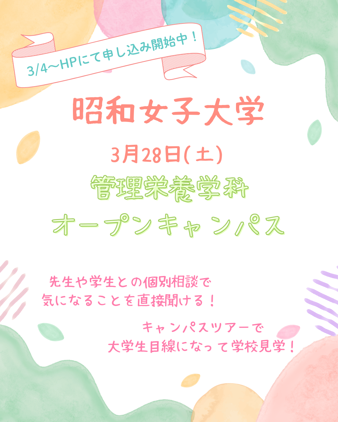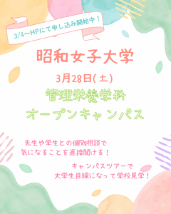 昭和女子大学では、3月28日(土)にオープンキャンパスを開催いたします!