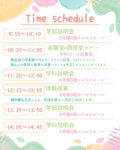10:25~11:05 実験室・調理室ツアー(学科ブース前集合)