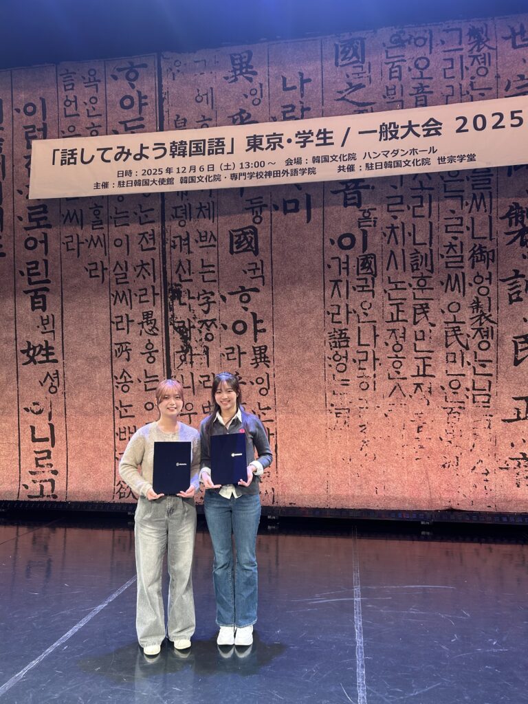 【News】祝!国際学科 徐新宇さん峰下栞奈さん「話してみよう韓国語2025」⼀般スキット部⾨受賞!