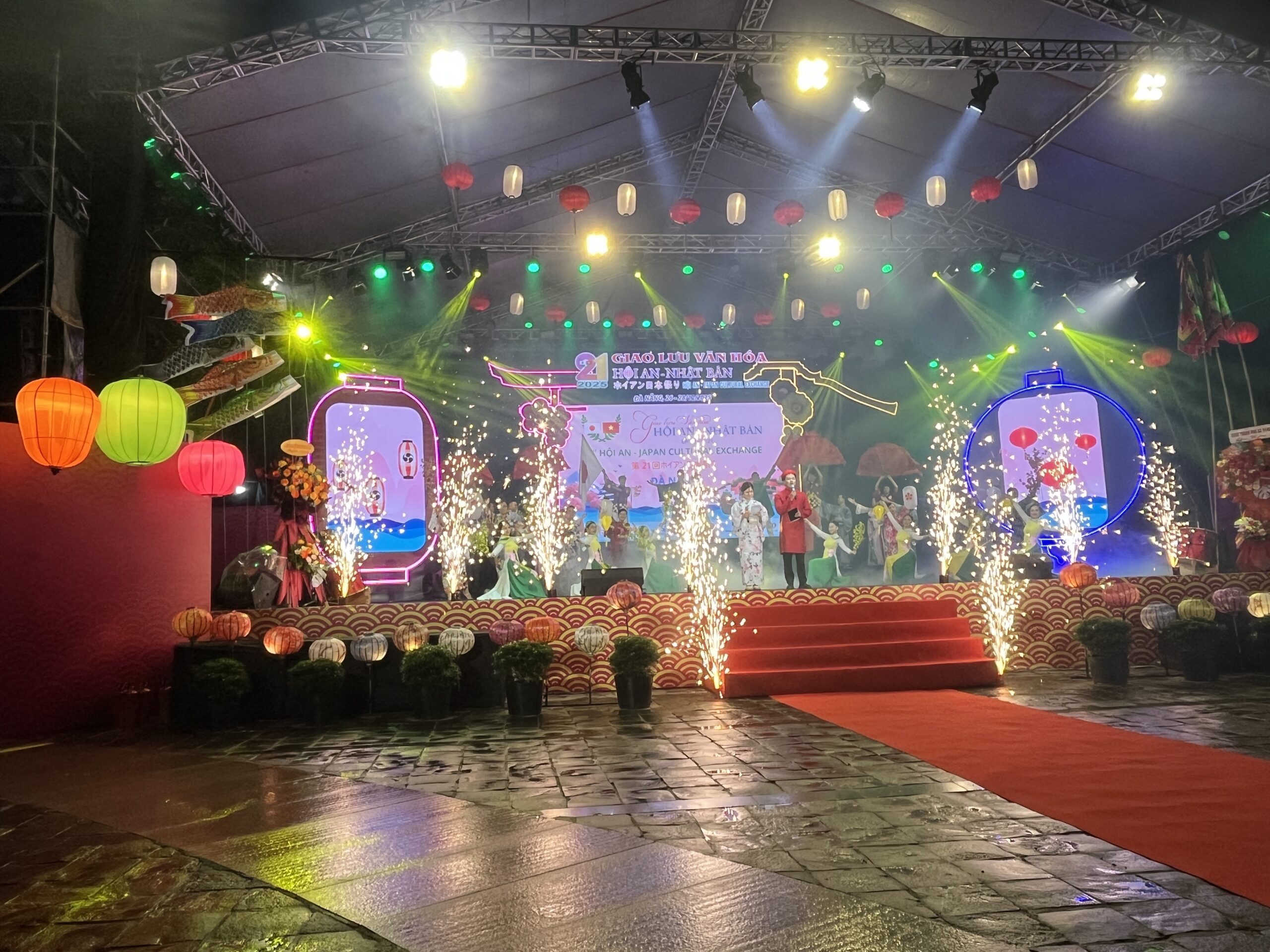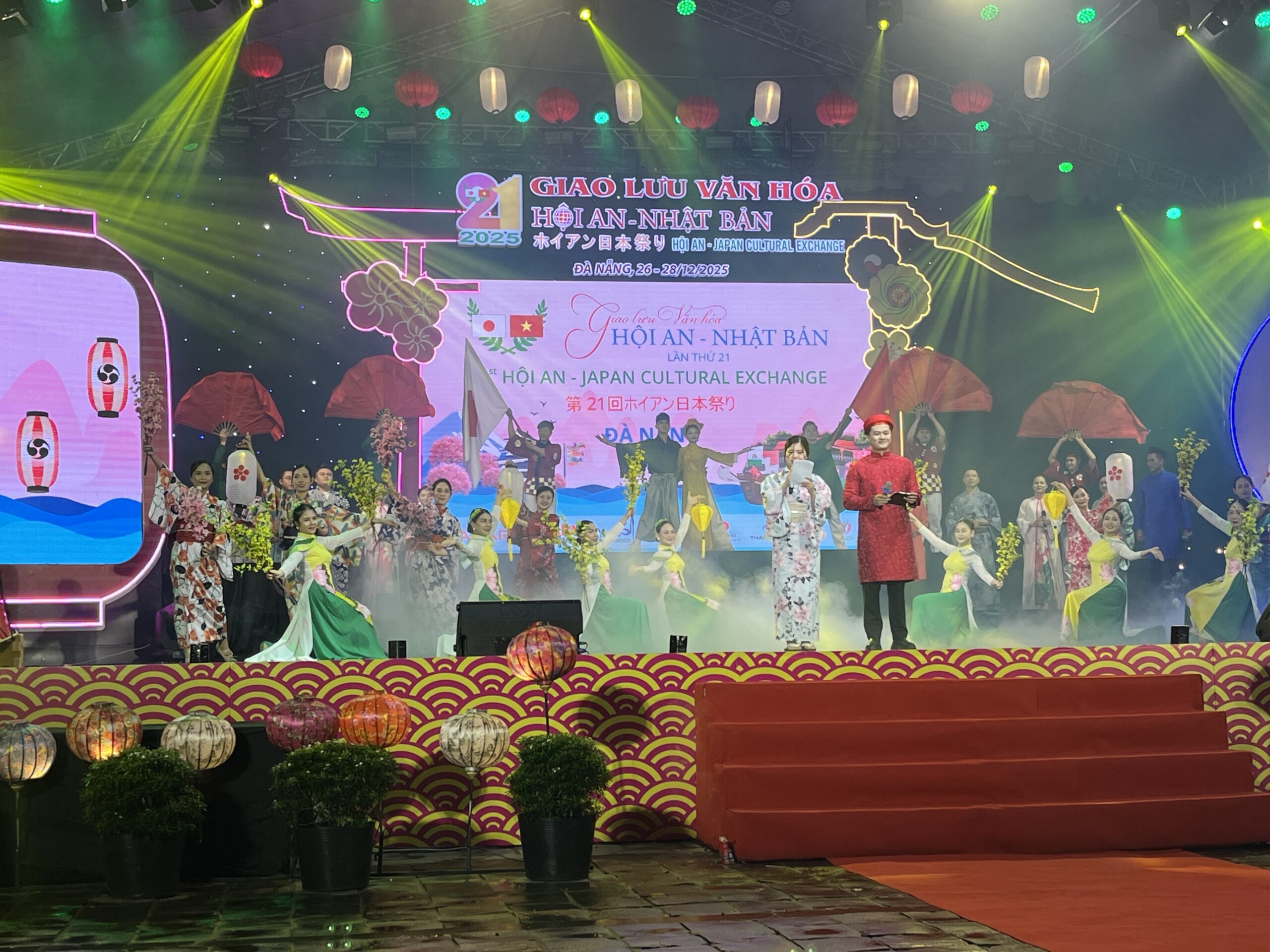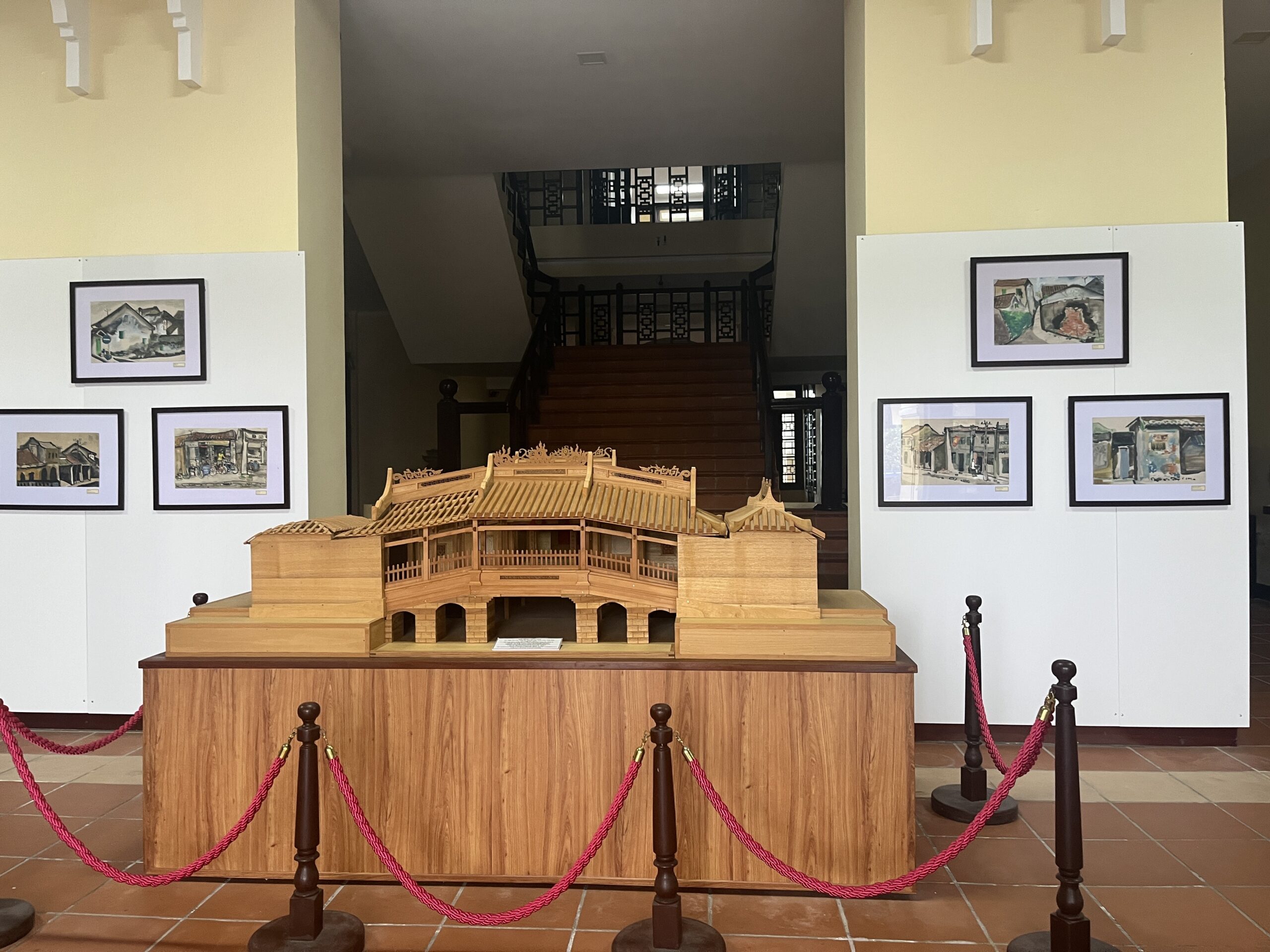 12月26日から開催されたホイアン日本祭りの開会式に出席してきました。2025年に地方自治体の再編があり、ホイアンはカンナム省からダナン市に統合され、ダナン市関係者も出席者に加わる中、盛大な開会式でした。日本からも総領事を始め、堺市からは、「陣太鼓」が披露されるなど、賑やかなお祭りの雰囲気でした。併せて、ご挨拶にお伺いしたのが、ホイアン遺跡保存センターです。というのも、2024年に国際文化研究所よりホイアン遺跡保存センターに「ホイアン日本橋」の模型を寄贈していたからです。10分の一の「ホイアン日本橋」の模型は、博物館の入り口正面に設置されていました。11月にホイアンで大きな被害のでた洪水の際には、被害にあわないように2階に避難させてくださったと伺い、模型も大事に保存していくださっていることが伝わりました。