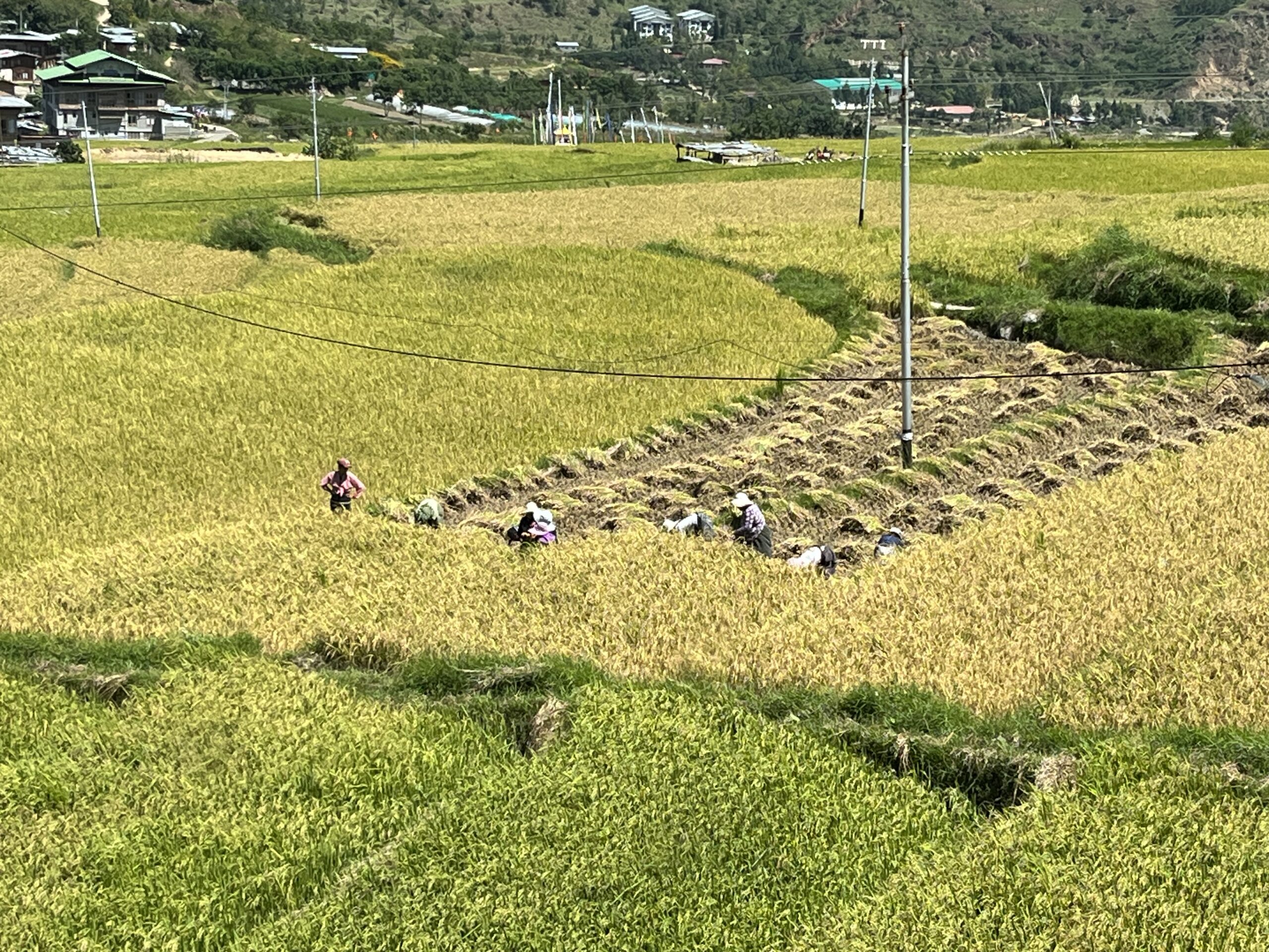 情報社会をご専門とする藤原先生だからこそ、単なる技術的な整理の問題にとどまらず、データの管理や公開をめぐる社会的背景や制度的課題についても多角的な視点からお話を伺うことができました。写真資料からは時代の変化を読み取ることができますが、その背後にある社会の変容について具体的な説明を加えていただいたことで、資料の意味がより立体的に理解され、大変示唆に富む内容となりました。(写真:首都ティンプー近郊の田園風景。2023年 発表者撮影)