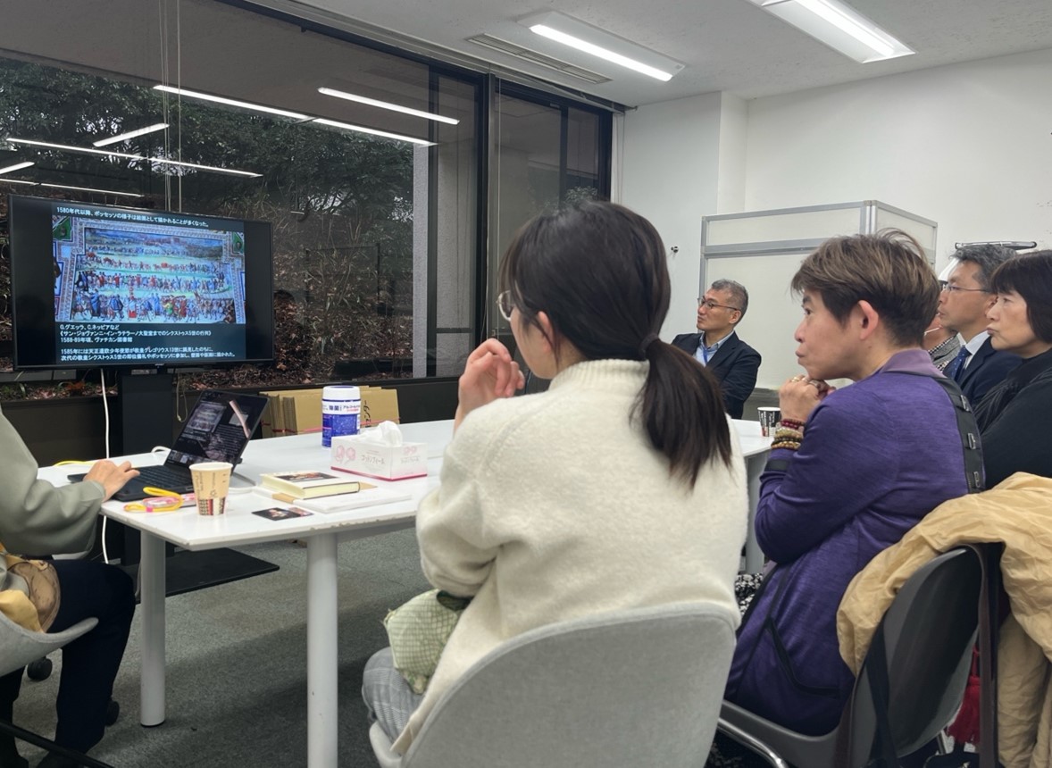 質疑応答では、行列に用いられた装束や動物の色彩が与える視覚的印象についての比較検討や、16世紀末に行列へ参列した天正遣欧少年使節に関する議論、さらには行列を記録した16世紀末以降の版画の芸術性など、多岐にわたるテーマで活発な意見交換が行われました。