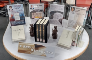 図書館では今、先生方が学生の皆さんのために選んだ、とっておきの本を展示中です。「なぜこの本なのか?」という問いへの答えは、本に添えられたメッセージの中にあります。図書館に来て、是非一度手に取ってみて下さいね。
