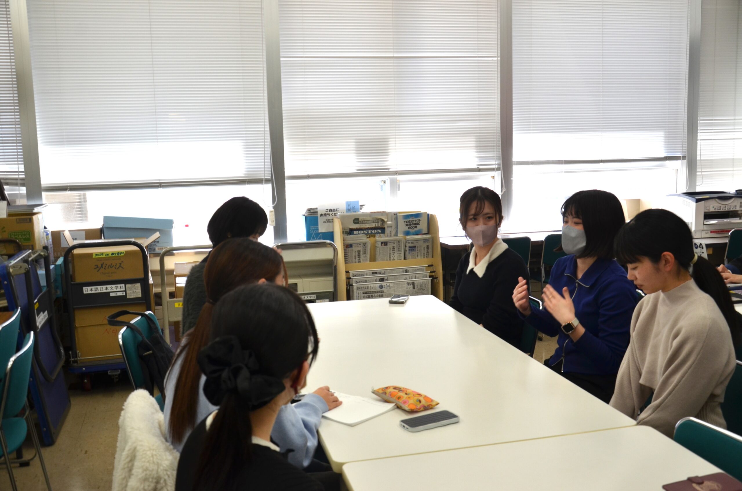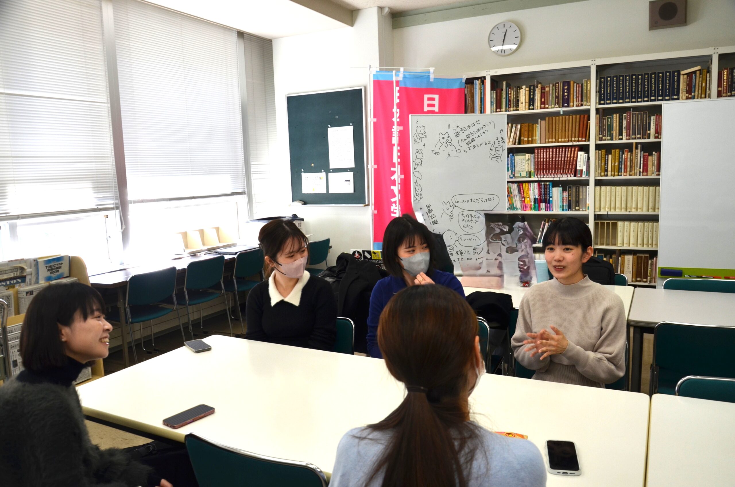 ――すっごいにぎやかです。議論が白熱しています。その中でも、メリハリがある感じです。普段から、学生間でコミュニケーションをとっています。なので、その仲の良さを生かしつつ、実際に卒論の話題に入ったりするときなどに、遠慮することなく話し合えるというのは、私たちのゼミのいい環境だと思います。