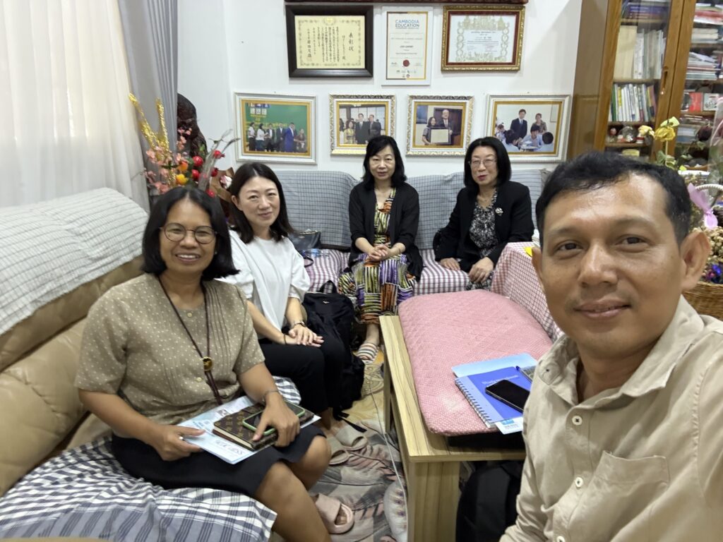 左から、王立プノンペン大学のレスミー学部長(本学大学院修了生)、マクナマラさん(本学、国際交流センター職員)、近藤教授(本学大学院)、池田(私)、キム先生(王立プノンペン大学)