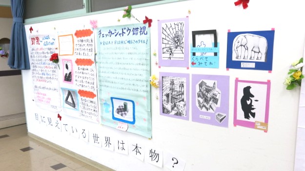 代表の2年生を中心に、錯覚班、箱庭班、逆さめがね・鏡映描写班の3つのグループに分かれて、5月頃から少しずつ企画を進めてきました。その結果、とても盛りだくさんの展示や体験コーナーができあがりました。