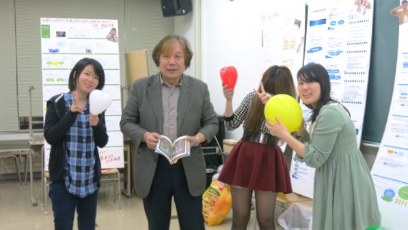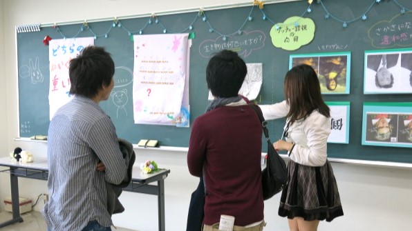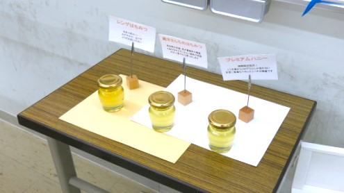 さらに、そのお隣の教室では、ハワードゼミの学生が「消費行動研究会」として行った研究の発表と復興支援のための展示が行われていました。宣伝文句によってどのハチミツがほしくなるか、など来場者がその場で参加できる実験も楽しんでもらえたのではないかと思います。