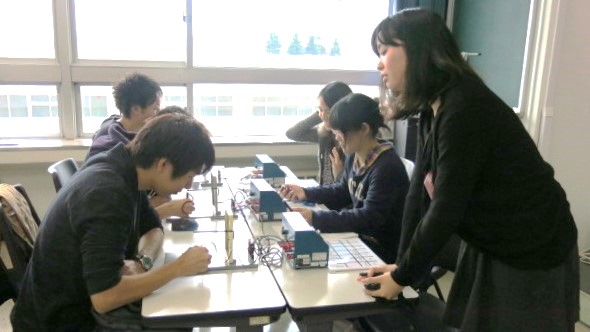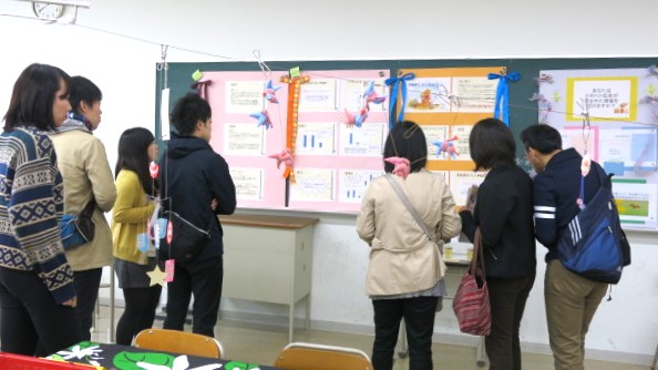 また、別の教室では、古川ゼミの学生による実験体験コーナーや研究発表の展示が行われていました。