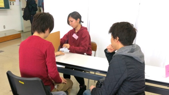 心理学科では、有志の1, 2年生が「心理学研究会」として心理学のおもしろさを知ってもらうためのさまざまな展示や体験コーナーを企画しました。