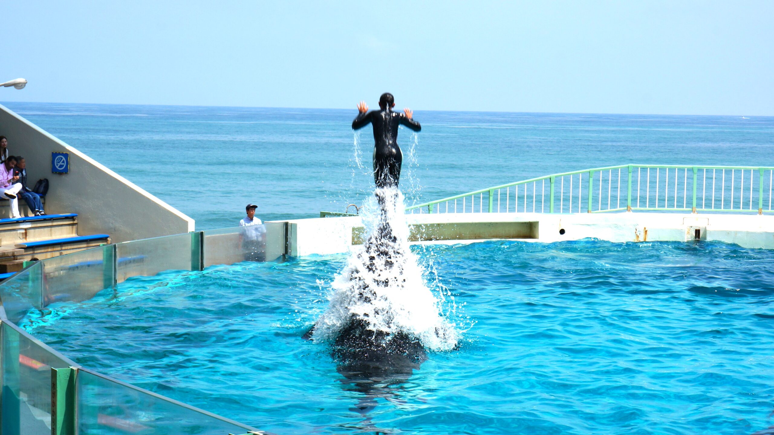 心理学科オリジナルの視点から企画された野外研修は、鴨川シーワールドで行われました。青い海と夏の青空のもとで、海の世界との出会いを体験しました。