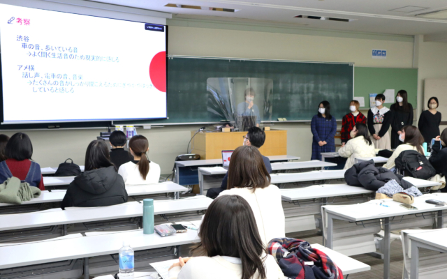 私たちはフィールドレコーディングとして都内各所の音を集め、サウンドマップを作成し、秋桜祭にて展示を行いました。また、昭和女子大学生の感性的特徴を明らかにするため、集めた音を用いて実験を行ました。プロジェクトを通じて、都内には様々な音が溢れていること、聞こえてくる音やイメージの違いによってその地域の特性が表されていることを学びました。