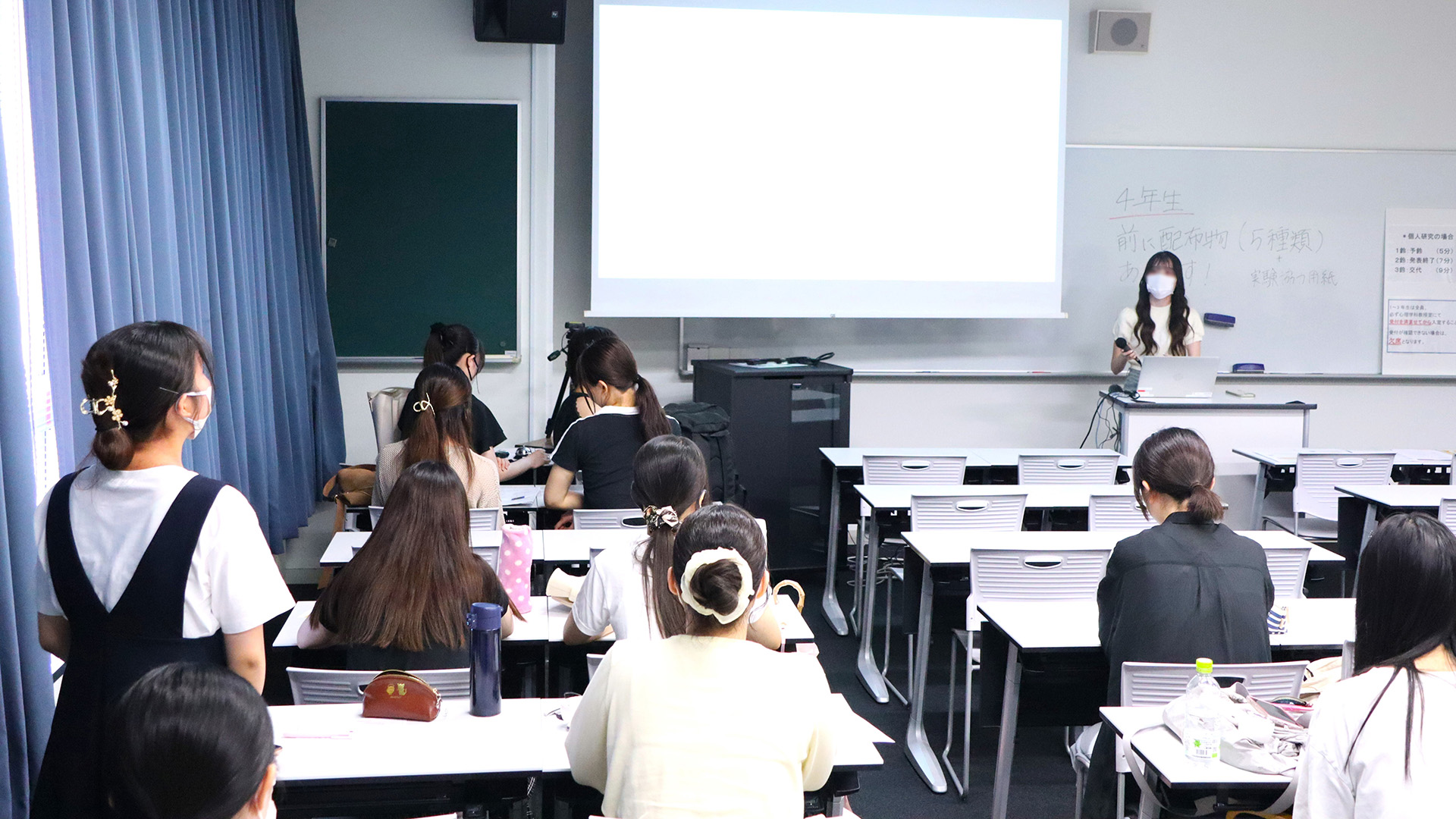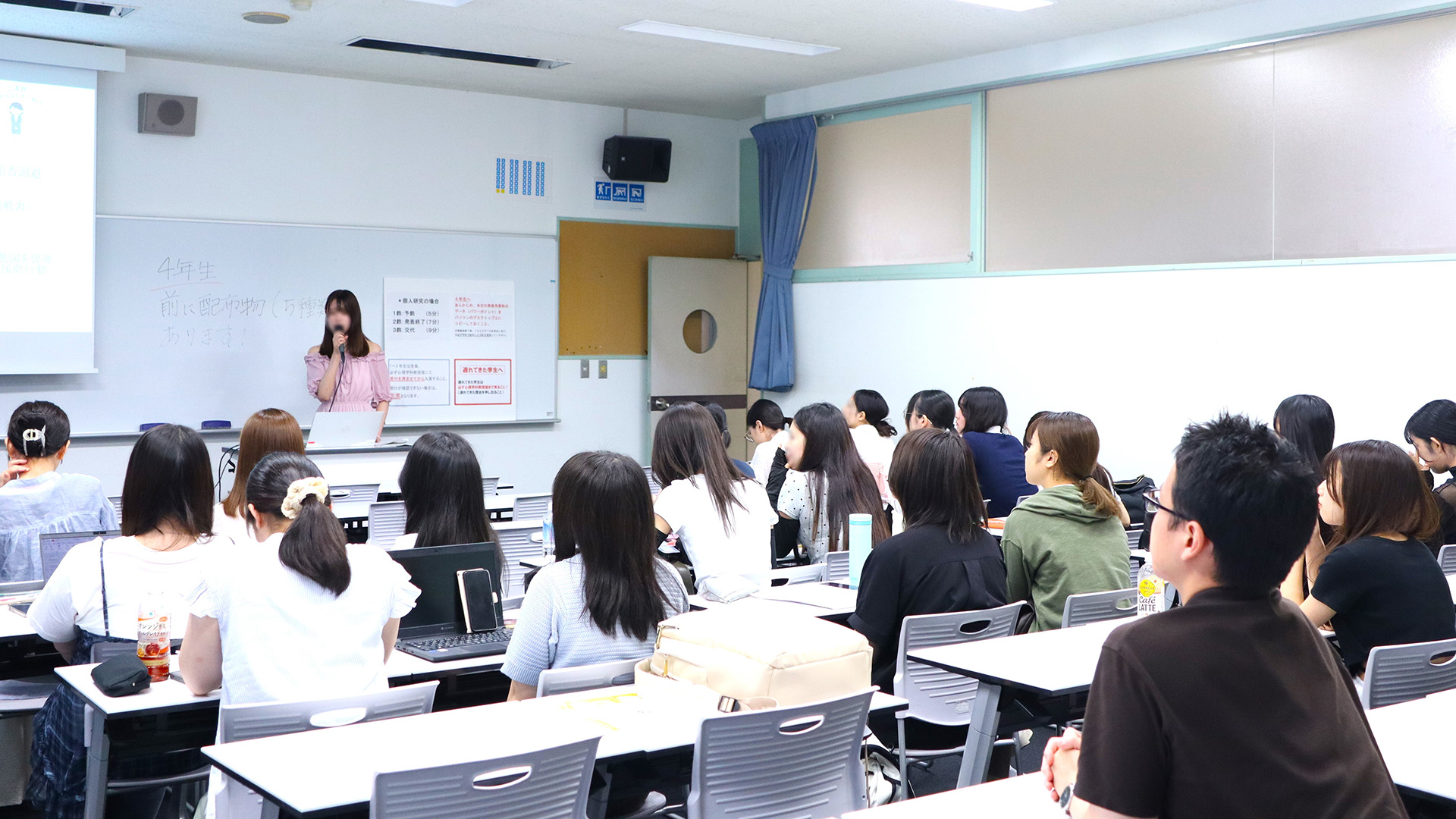 4年生にとっては、自分の研究を初めて聴く人に対して、7分という限られた時間の中で大事なポイントをわかりやすく伝えられるような工夫をすることが求められます。