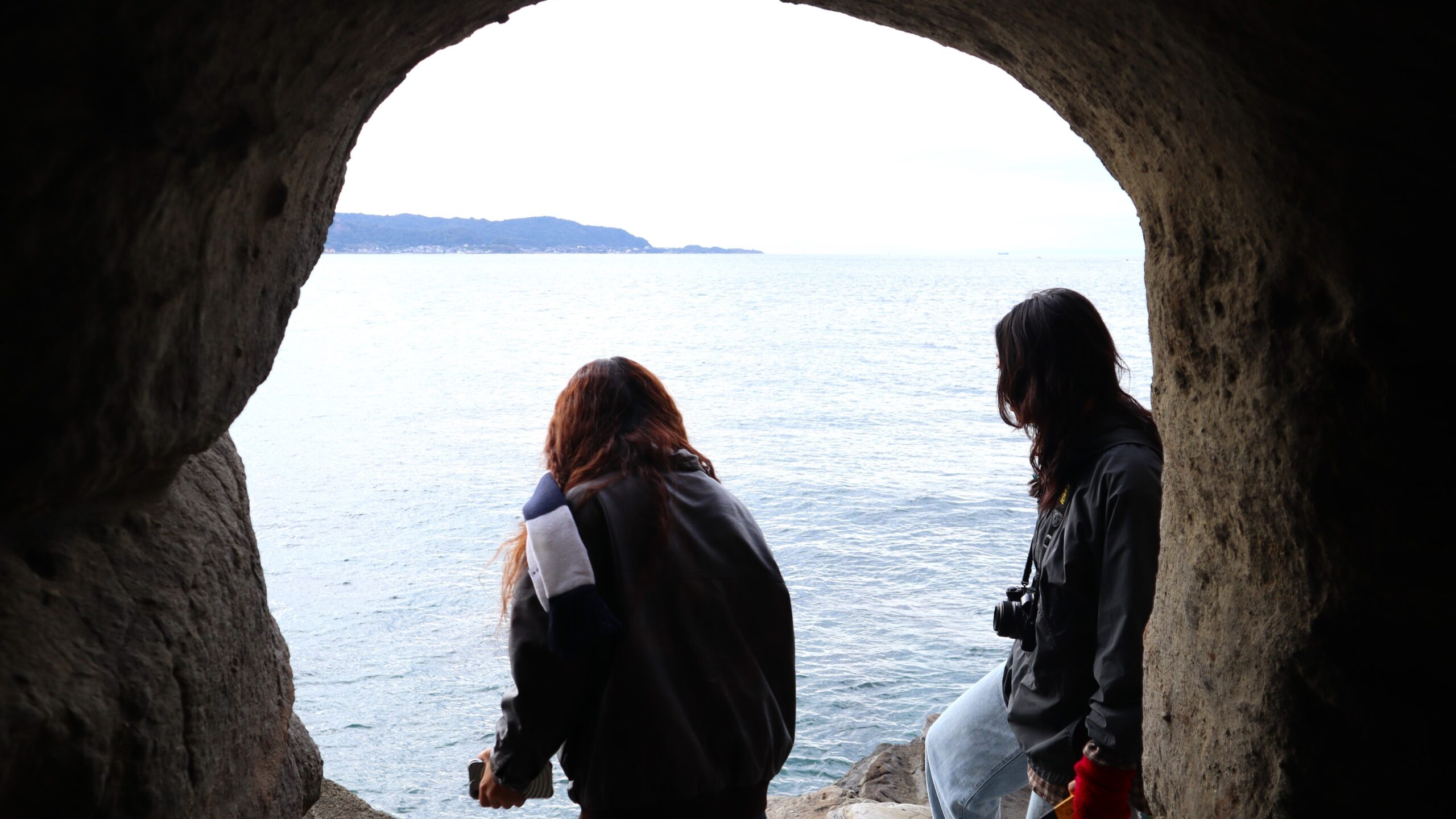 また、沖ノ島にも立ち寄りました。宇賀明神社⛩️にお参りし、良縁を願った後、島から見ることのできるトトロを探したり、洞窟を覗いたりと、海岸と島の中を散策しました。