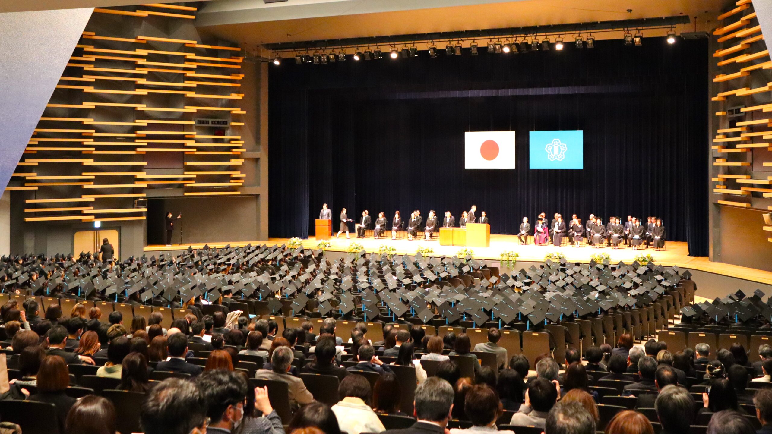 式場の人見記念講堂は、4年間の思い出を振り返る温かな空気と、未来への希望に満ちた熱気に包まれていました。