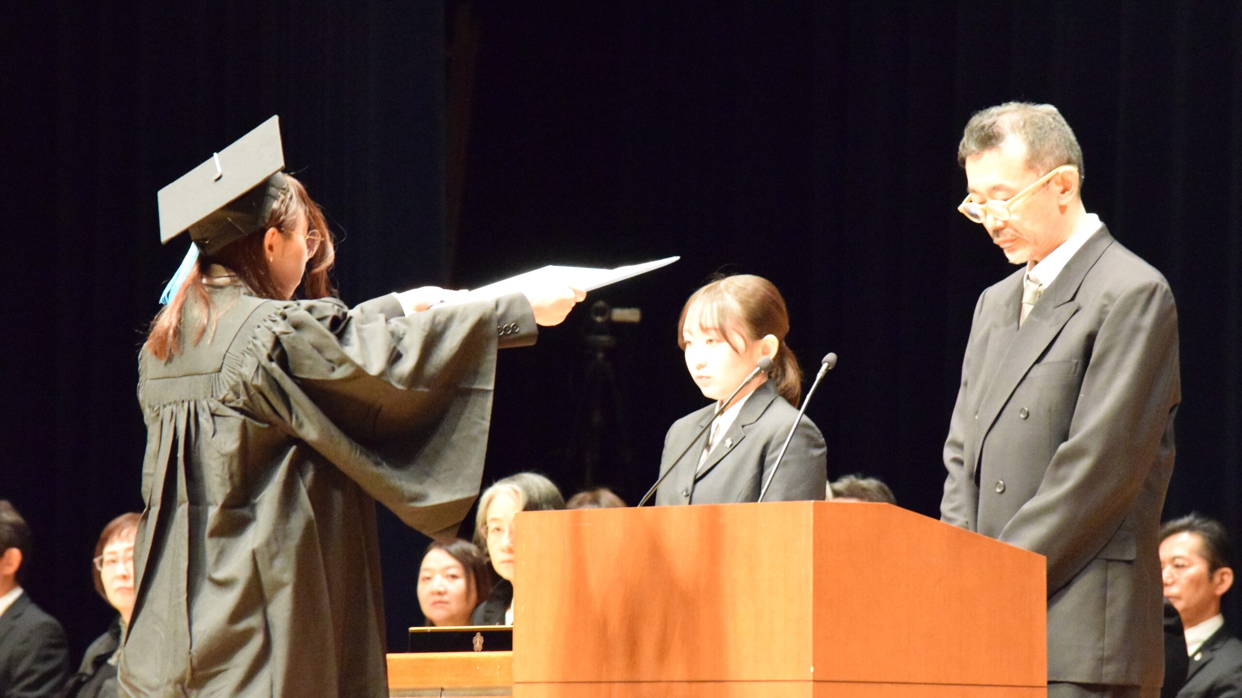 卒業生代表への学位記授与や学長賞の授与が行われ、学長や来賓の方々から門出を祝う言葉が贈られました🌸