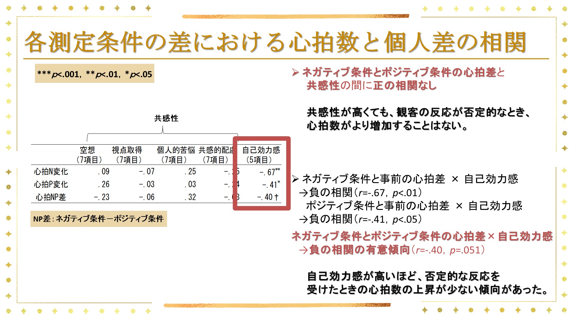 本研究では、アマチュアバンドの演奏者にネガティブなフィードバックを与えたとき、演奏時の主観的なあがり意識と心拍にどのような影響が生じるのか、またその影響が共感性と自己効力感(※)といった個人差によってどのように変わるのかについて検討しました🤔