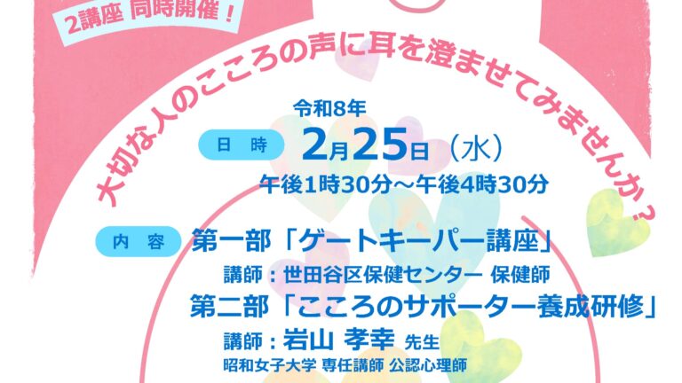 世田谷区保健センター主催「みんなで支えるこころの講座(心のサポーター養成研修)」の講師担当