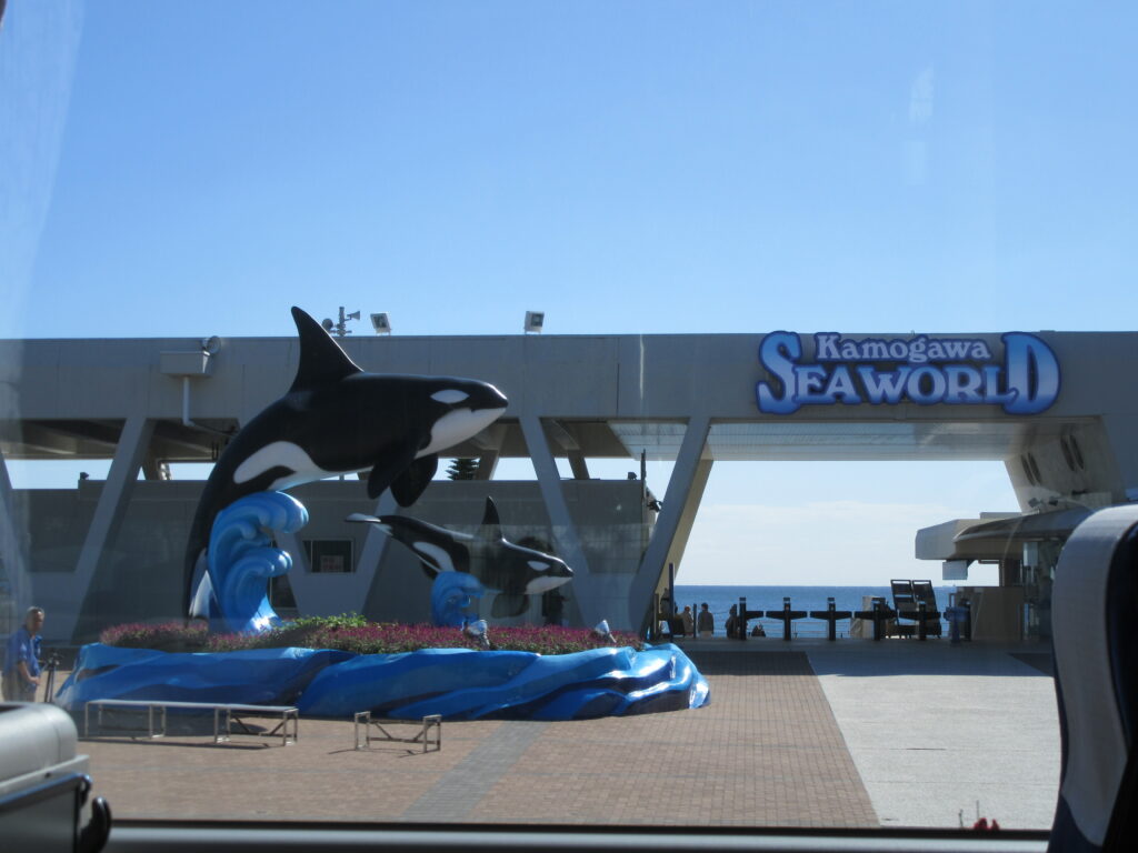1. 3年生は大学を出発し、鴨川シーワールドへ向かいました。